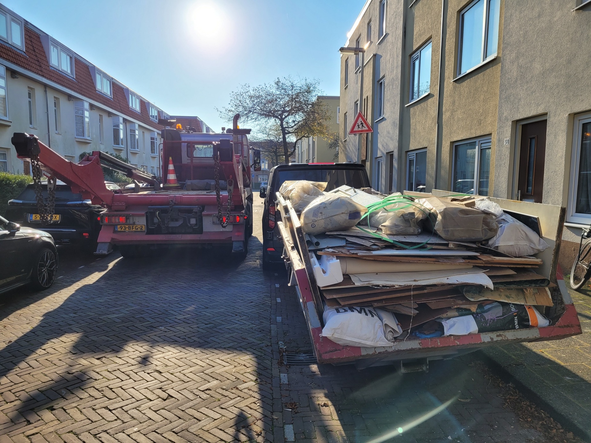 Later op de dag reden we naar Den Haag. Het was een uitdaging om door de smalle straten van het centrum te manoeuvreren, maar Theo deed het zonder enige moeite. Ik keek vol bewondering toe hoe hij een zwaar beladen container met bouwafval perfect op de wagen wist te plaatsen. Het was echt een kunst om te zien hoe hij met precisie werkte.